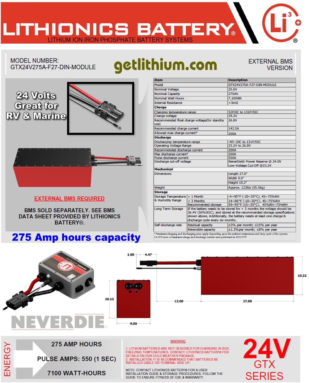 GTX 24V 275A F27 DIN Module is a great, lightweight Lithionics