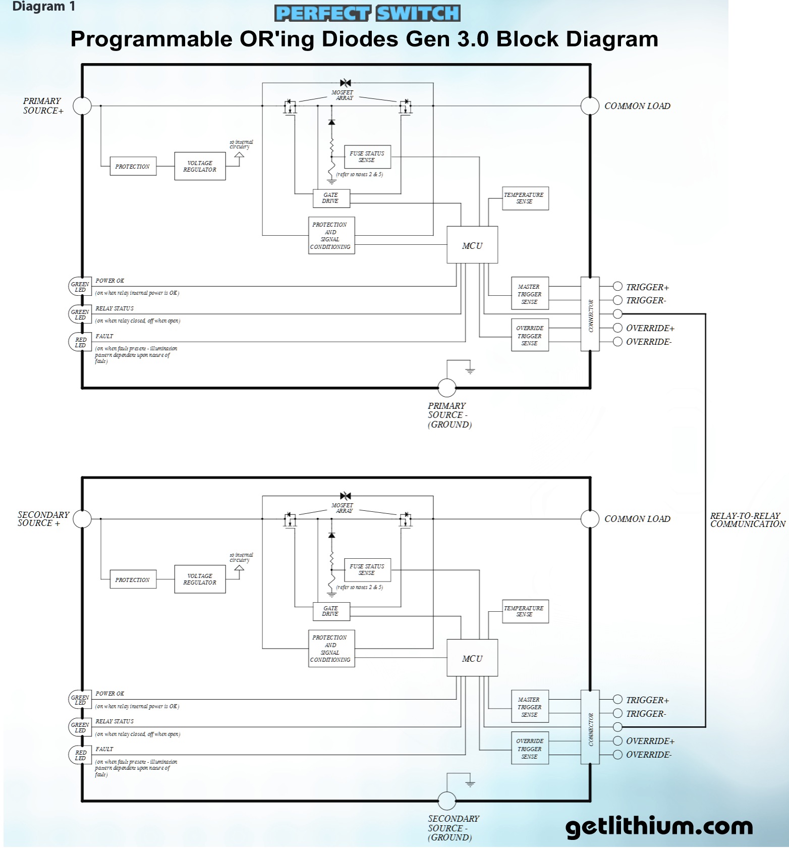 Recommended by EnerSys (manufacturer of Odyssey, Hawker, Loadhog, Powersafe, General, NP, Ironclad, Genesis, Heritage, and Varta batteries), and utilized in both military and civilian applications, POWER-GATE Battery Discharge Controllers insure that power gets to where it's needed without the excessive heat and Voltage drop typified by more common, lesser performing silicon and Schottky devices. Unlike conventional silicon and Schottky isolators, POWER-GATE's achieve sub-100 micro-ohm performance, even as the currents climb through 600 Amps; that's over 1,000% more efficient than traditional silicon and Schottky technology. With heat being the primary killer of electronics, engineering heat OUT of the product yields unparalleled reliability. Perfect Switch manufactures Battery Discharge Controllers in two configurations: Single Rectifiers and Dual Rectifiers. Each is designed for use with multiple batteries and how you plan on using your DC resources will dictate which device is the appropriate choice for your application. Single rectifiers and dual rectifiers are available up to 300 Amps. Perfect Switch also offers higher power dual rectifier devices from 400 Amps to 600 Amps.