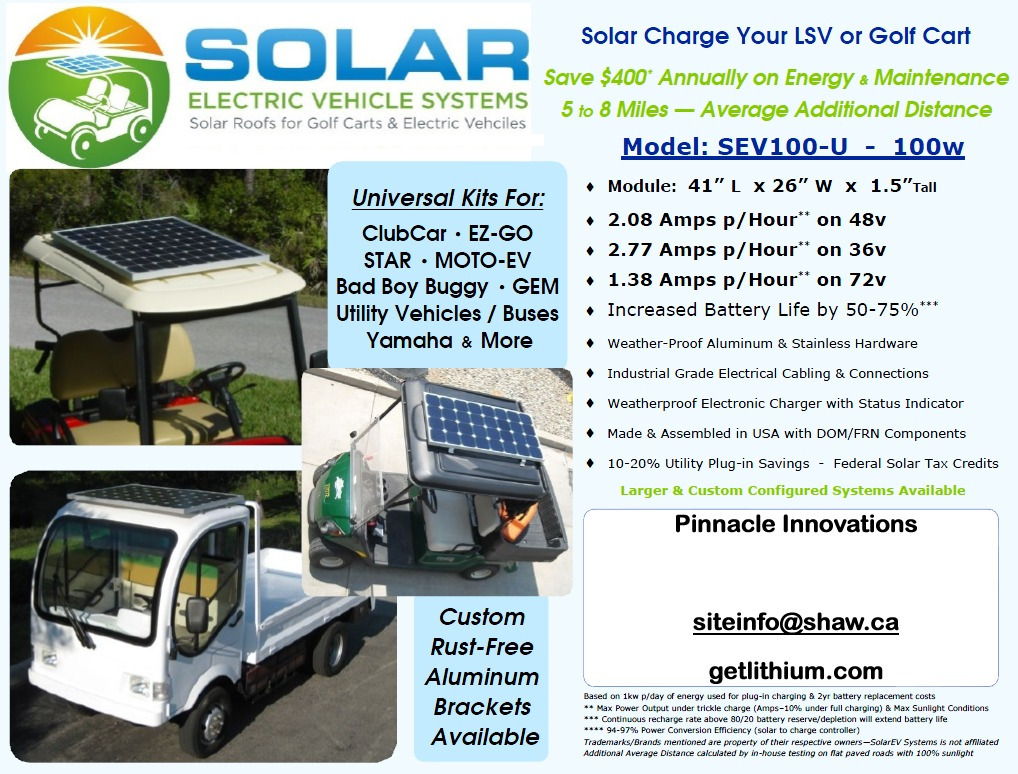 SOLAR EV SEV-100-U UNIVERSAL ELECTRIC GOLF CART SOLAR POWER CHARGING KIT